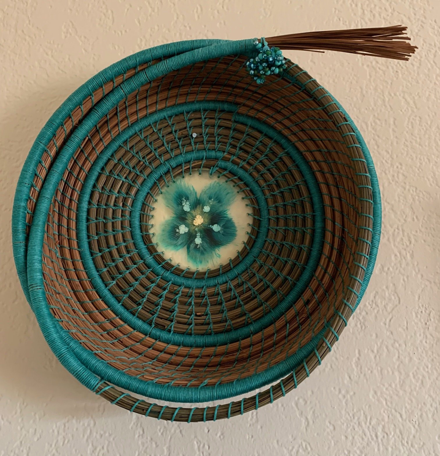 Pricing on Pine Needle Baskets can range from $75.00 to $300.00 depending on size and cost of materials. Please contact artist by email for more information on specific pieces.